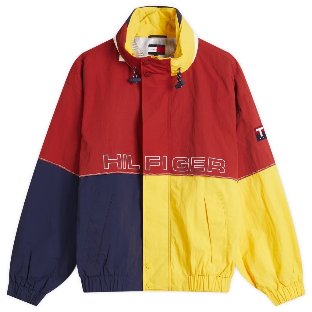 Want a bolder look? Try colour-blocked windbreakers in red, green or royal blue.