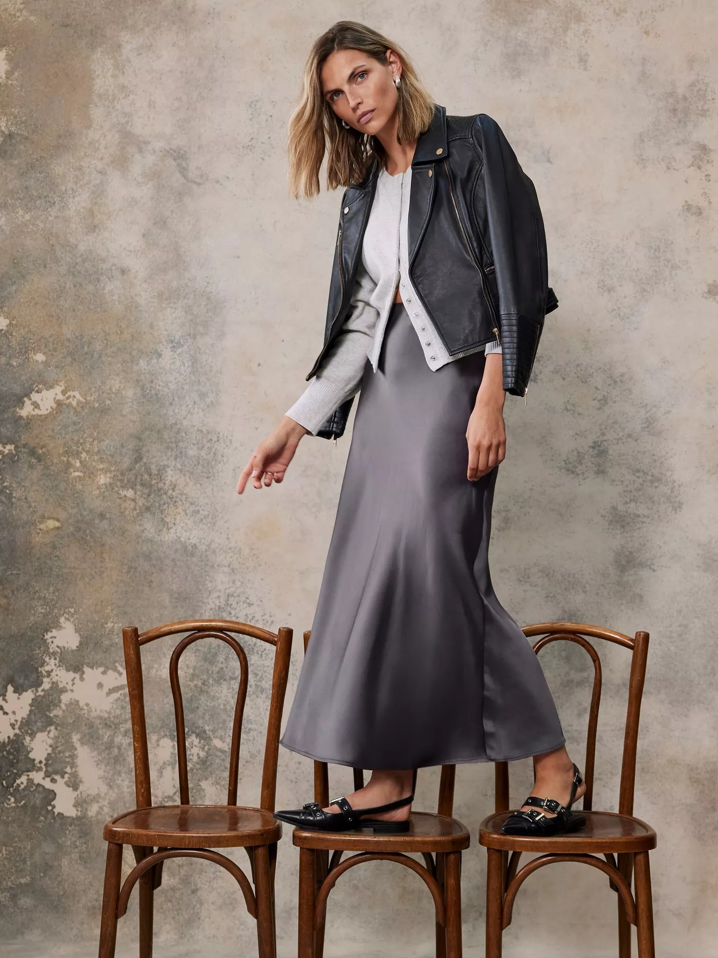 Like the slip dress, the slip skirt is an effortlessly chic 90s revival piece. Lightweight and easy to wear, it works for both casual and dressed-up occasions.