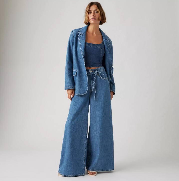 Pair high-waisted, wide-leg jeans with a fitted tank or baby tee. Add chunky trainers or loafers and a shoulder bag for the ultimate throwback look.