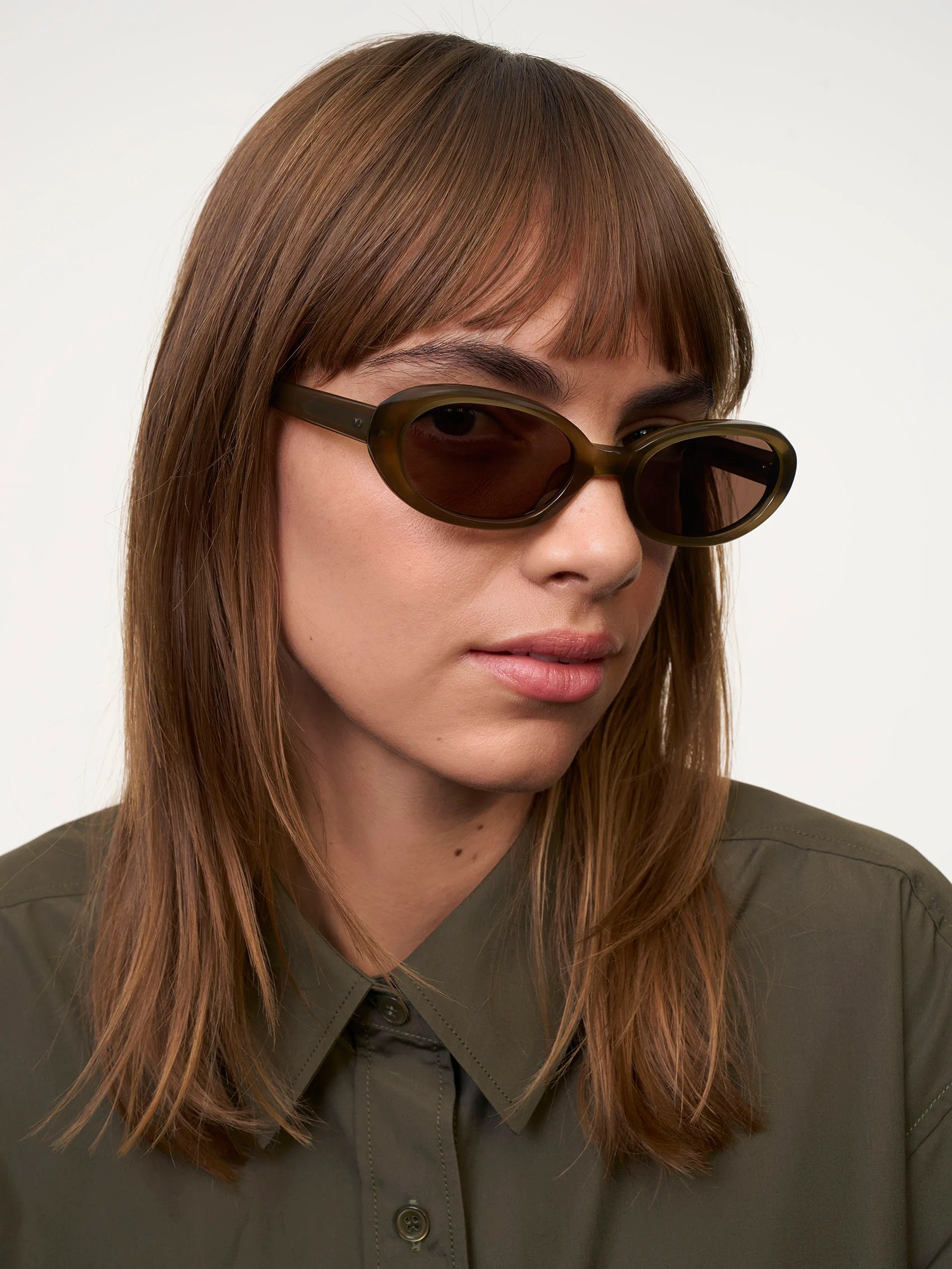 Effortlessly cool and eco-conscious, The Elvie by Jimmy Fairly combines Parisian flair with modern sustainability. Crafted with bio-acetate, these oval shades offer a slightly elongated silhouette, flattering a variety of face shapes. The smoky neutral tones make them incredibly versatile, whether you’re dressing up for date night or going off-duty.