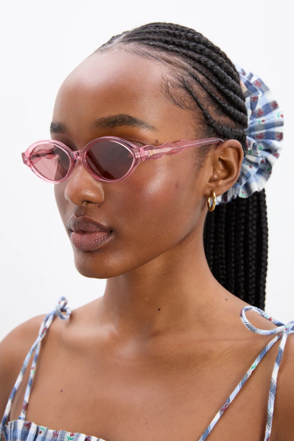 Fun, flirty, and fantastically affordable, Damson Madder’s take on the oval trend is youthful and quirky. The wavy temple arms add a Y2K twist, while the slim pink frame channels early-2000s pop culture with a contemporary upgrade. They’re perfect for Instagram-worthy moments or adding a touch of playfulness to neutral looks.