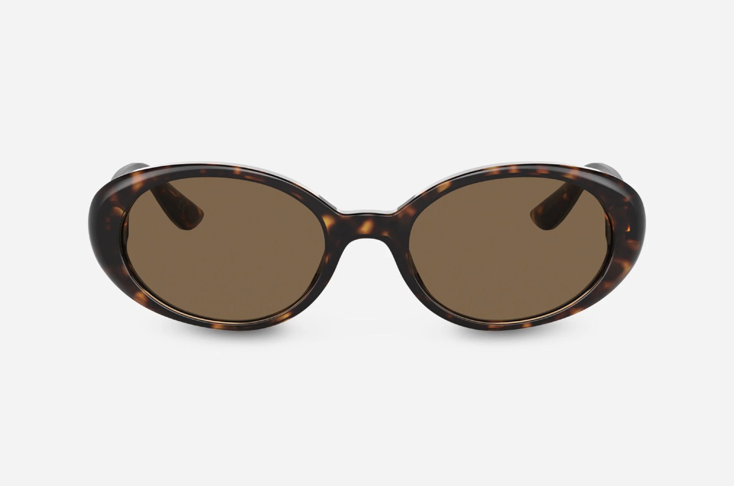 For bold glamour, Dolce & Gabbana’s DNA Re-Edition sunglasses bring a nostalgic edge with high-impact Havana acetate frames. These oval shades channel old Hollywood, while the re-edition design pays homage to early 2000s maximalism. They’re luxurious, distinctive, and undeniably confident.