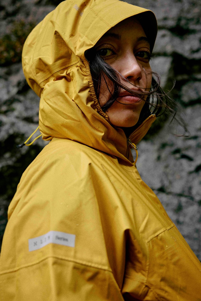 Crafted from PERTEX Shield Revolve — a mono-material made entirely from recycled polyester — this minimalist waterproof shell offers protection without bulk. Large hand pockets double as ventilation, making it ideal for active use.