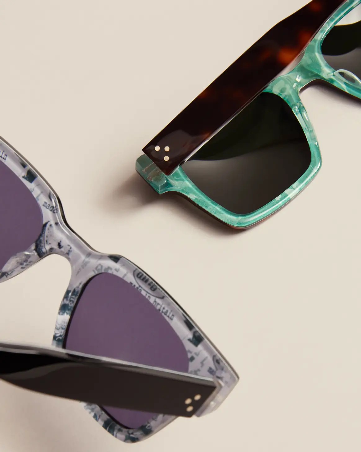 The limited edition Ted Baker x Oliver Goldsmith collection is exclusively available online and in store at Ted Baker’s Regent Street flagship in London, with frames retailing for lb300.