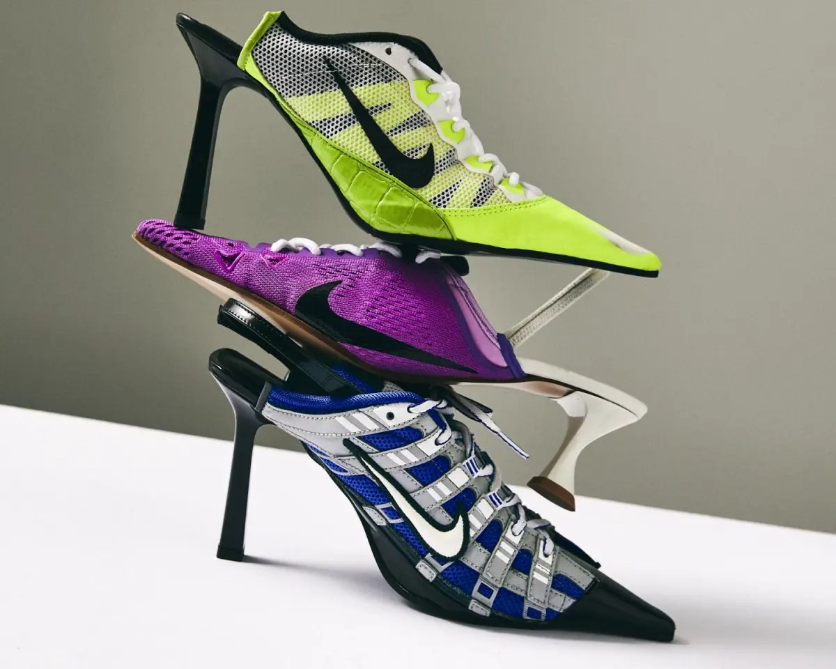 Renowned for her innovative approach to sustainable footwear, Ancuta Sarca is a Romanian-born designer who specialises in creating unique sneaker-heel hybrids by up-cycling vintage materials, blending elements of sportswear and luxury fashion.