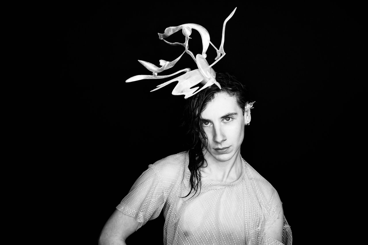 Leo Carlton (they/them) combines VR sculpts, 3D scanning and printing with a test-lab of biomaterials. A transparent exploration into the convergence of the digital and physical realms with sustainable and renewable realities. Using 3D scans of a head, face or body lends to a bespoke process where using technology and natural plant based materials produces a wearable and ecologically-friendly outcome . This process is inclusive of all bodies.