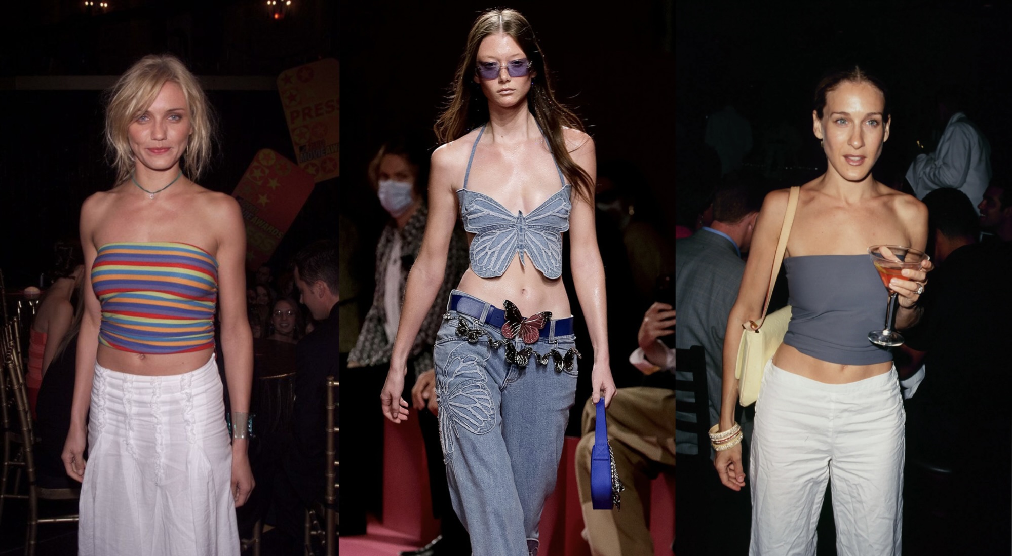 Tight, strapless or tie-neck tops ruled early 2000s nights out.